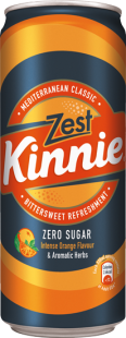 KINNIE Zest - The Mediterranean Classic - ohne Zucker, mit mehr Organgen-Power: KINNIE Zest (=Lebensfreude), das 2. zuckerfreie Rezept steht für reinsten KINNIE-Genuss mit noch mehr Orange, aber "zero" Zucker.